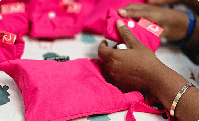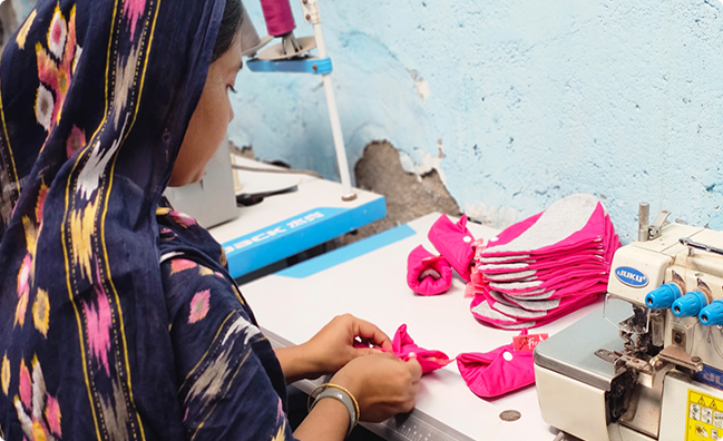 Set Free Pads are comfortable, reusable sanitary pads designed by Sameena Kauser, one of our own team members, who understood firsthand the realities faced by women in vulnerable communities. Her design offers a practical, affordable, and sustainable solution where disposable pads are not an option.